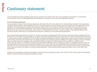 - The document is a presentation by Rio Tinto's chief economist from April 2010 discussing global economic trends and outlooks, with a focus on China.