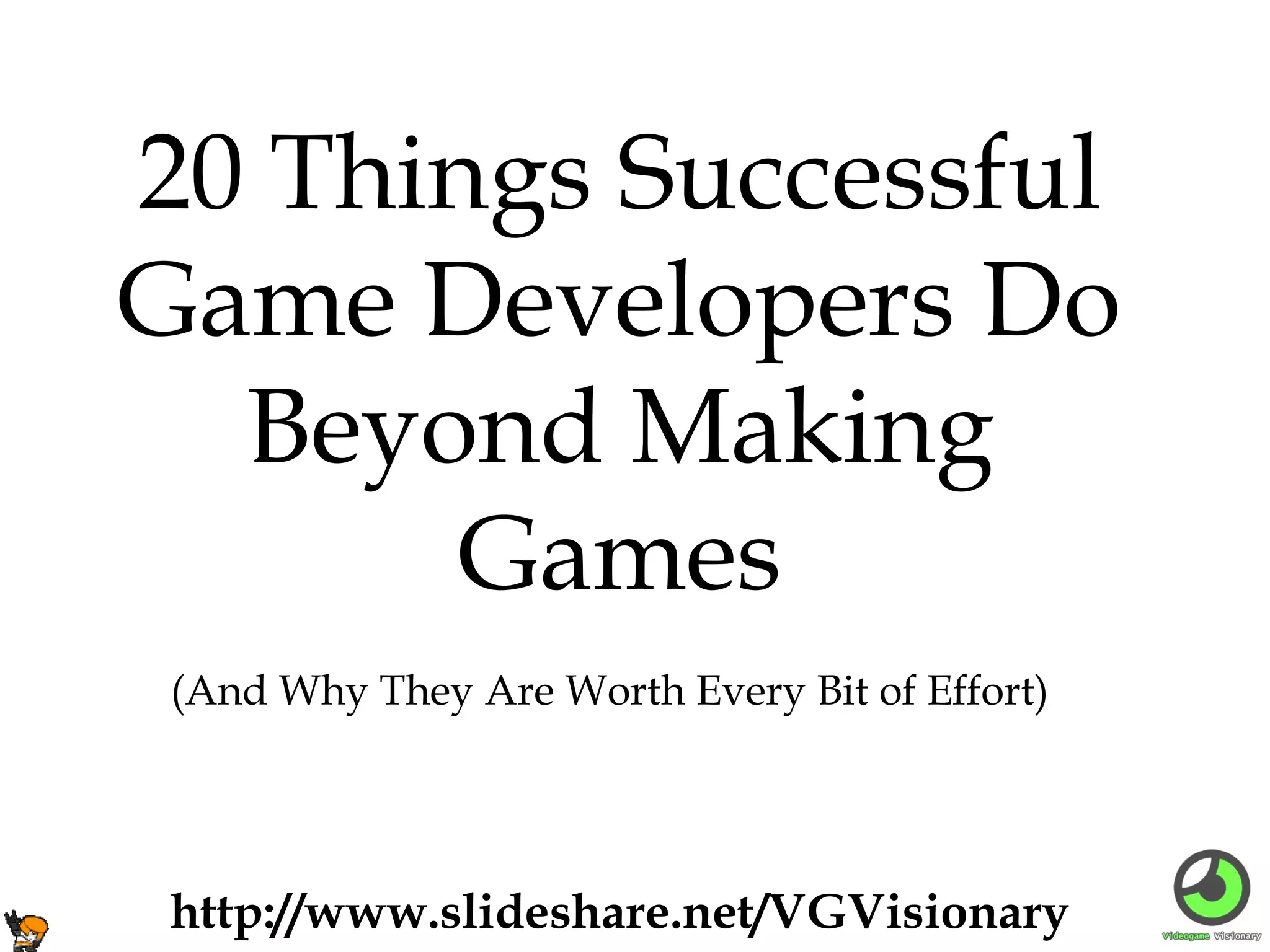 The document provides a 20-point list of things that successful game developers do beyond making games. It begins with an introduction to the author and his background. The main list includes recommendations such as prototyping quickly, ensuring the first 15 minutes of a game are engaging, preparing for business aspects early, gathering industry research, embracing analytics, and getting out of the trenches to network. Throughout are examples and the author's own experiences to illustrate each point.