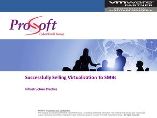 This document provides an overview and sales approach for selling virtualization solutions to small and mid-sized businesses (SMBs). It outlines that 1/3 of SMBs have started virtualizing and 50% plan to in the next 12 months. The presentation covers how virtualization can increase productivity, availability, and reduce costs. It introduces SMB-focused virtualization packages from VMware and handles common objections regarding VMware versus Microsoft and open source solutions.