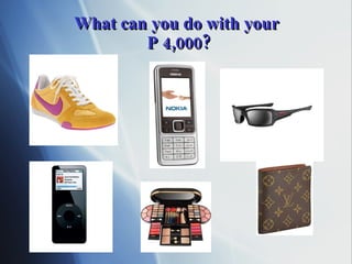The document discusses different business opportunities through a mobile phone franchise called Vmobile. It outlines how individuals can start as retailers or dealers to earn commissions from selling prepaid phone and cable packages. As retailers, people can sign up other retailers and earn overrides on their sales. As dealers, individuals can endorse other dealers and retailers and earn bonuses on all of their downstream sales networks over 6 months. Even just endorsing a few others can generate over ₱76,000 in income, more than the initial ₱4,000 capital required.