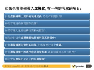 賽門鐵克 VMware 解決方案 - 業界最完整的可用性及資安產品線