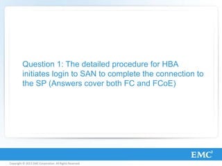 This document provides an overview of Fibre Channel protocol and components. It describes the Fibre Channel layered architecture including FC-0 through FC-4 layers. It covers Fibre Channel frames, exchanges, sequences, flow control, addresses, port initialization process and common fabric services. Key topics include Fibre Channel protocol makeup, components, transceivers, cables, switches, host bus adapters, world wide names, and fabric login process.