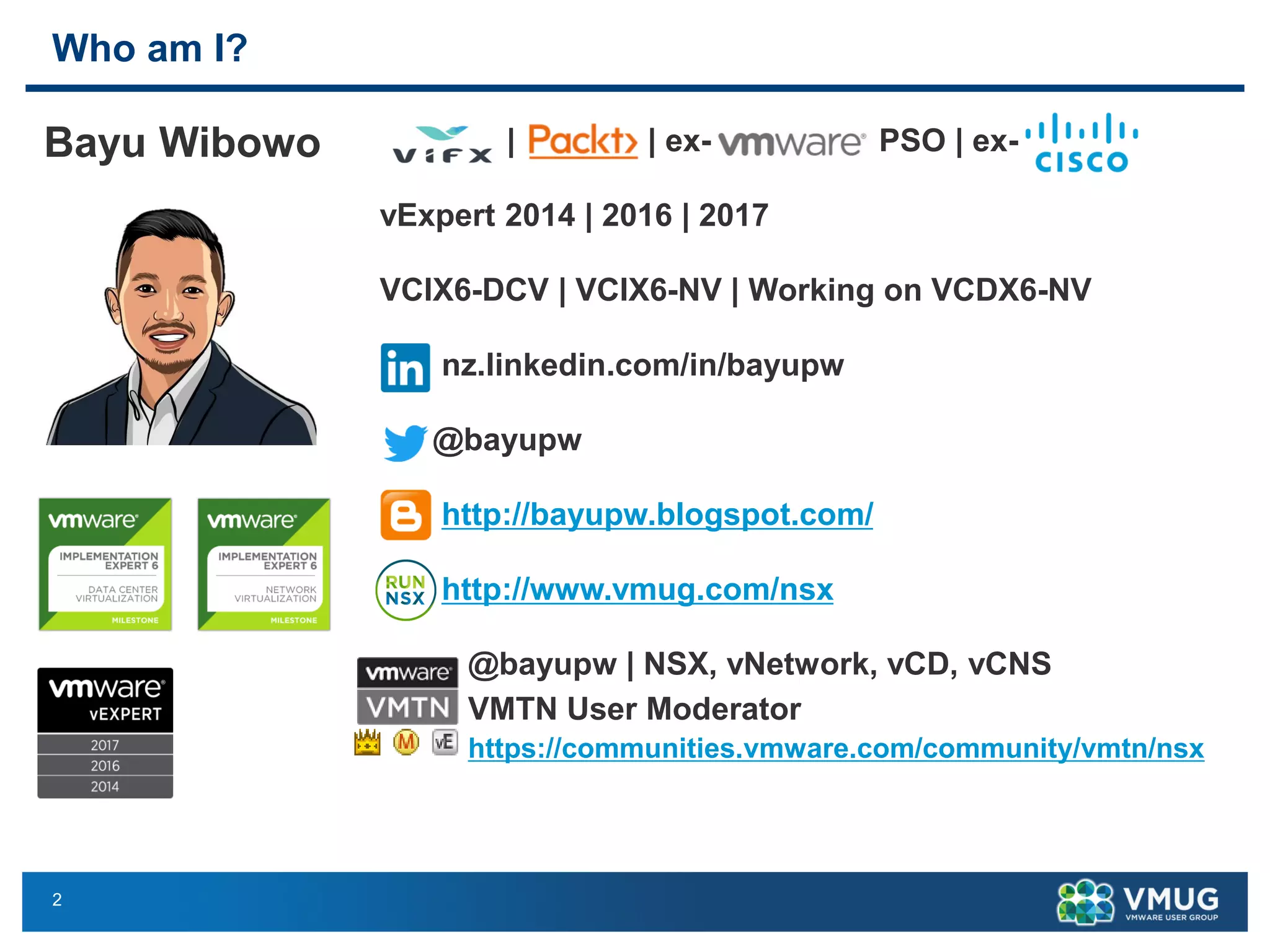The document provides an overview of VMware NSX and Arista VTEP Layer 2 gateway integration, detailing hardware and software configurations for efficient network communication. It covers key topics such as VXLAN to VLAN bridging, NSX layer 2 enhancements, and configuration steps for hardware VTEPs. Additional references and community engagement opportunities related to the integration of these technologies are also mentioned.