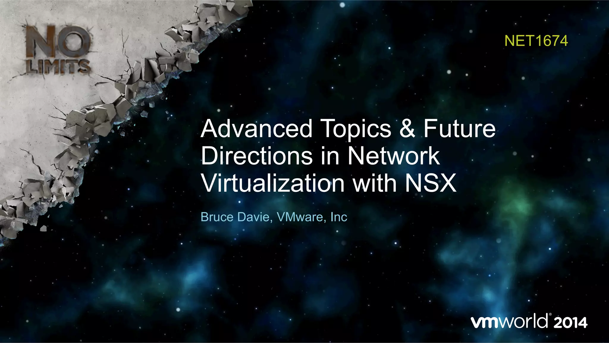 This document provides an overview and update on VMware's NSX network virtualization platform and previews future directions. It discusses expanding NSX capabilities like physical network integration, new encapsulation formats, and multi-site network virtualization. The presentation also explores advanced topics such as distributed logical routing, handling elephant flows, and enabling service chaining through network virtualization. Overall, the document outlines how NSX provides network virtualization and previews exciting new capabilities and use cases for virtualized networking.