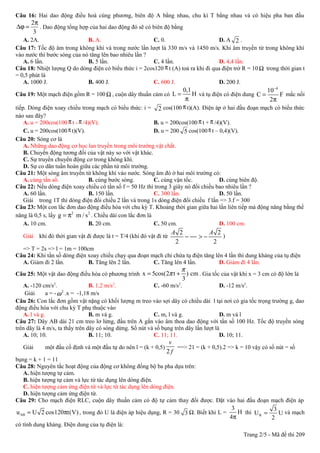 Tài liệu chứa 32 câu hỏi về các khái niệm liên quan đến điện, sóng, âm và dao động cơ học, bao gồm các tính toán năng lượng, tần số, dẫn điện và các quy luật vật lý cơ bản. Mỗi câu hỏi yêu cầu thí sinh tính toán hoặc xác định các giá trị vật lý cụ thể như hiệu điện thế, công suất tiêu thụ, và tần số sóng. Ngoài ra, tài liệu còn có một phần riêng về giao thoa sóng và đặc điểm của sóng âm.