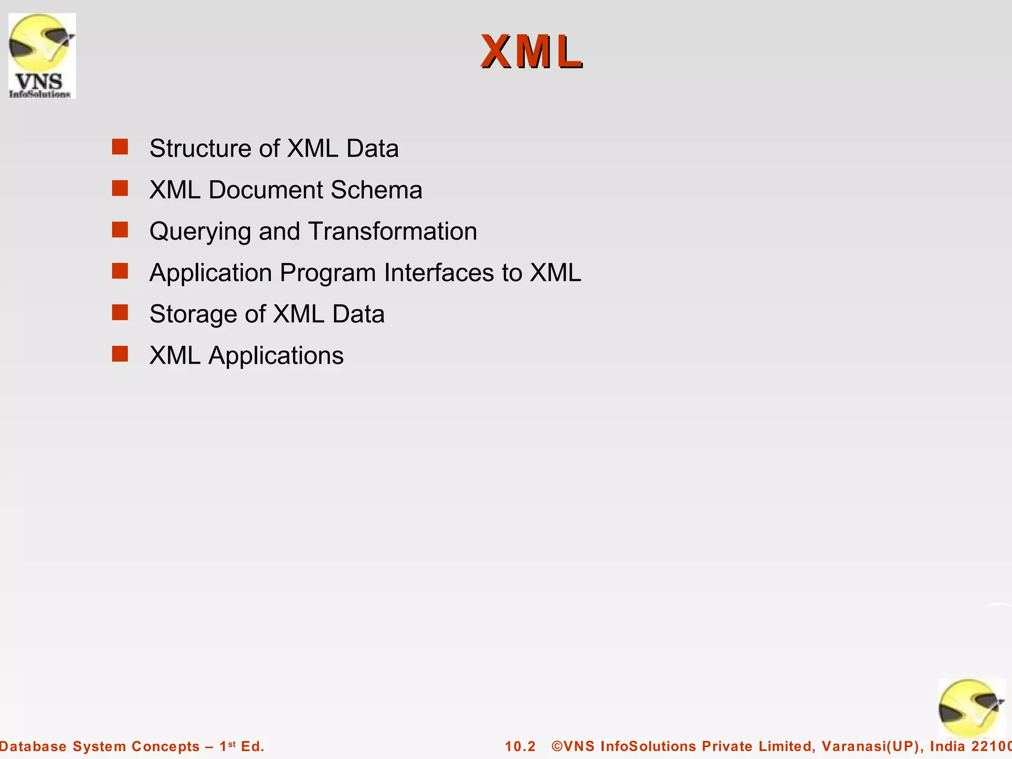 The document discusses XML as a flexible format for data interchange, emphasizing its structure, advantages over traditional formats, and applications in diverse fields such as banking and science. It covers XML's components, including elements, attributes, and the use of Document Type Definitions (DTD) and XML Schema for defining rules and constraints. Additionally, it highlights the importance of nesting and self-documentation in XML's design.
