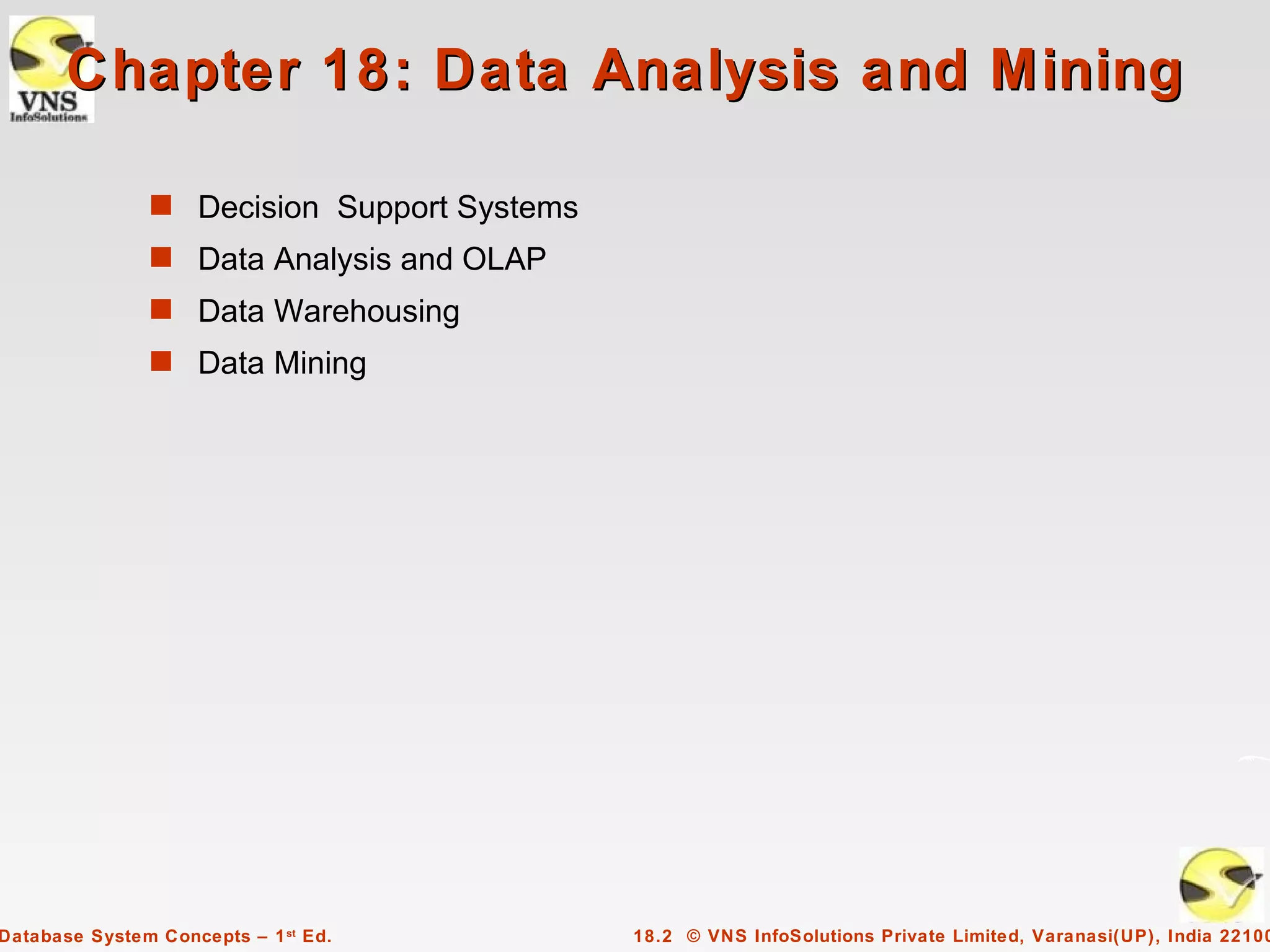 The document discusses data analysis and mining within database systems, highlighting decision support systems that use data from online transaction-processing systems for business decisions. It covers various data analysis tools such as OLAP, data warehousing, and the importance of data mining for discovering patterns and knowledge in large databases. Key concepts include data cubes, aggregation methods, and the design and implementation of data warehouses for streamlined querying and historical data analysis.