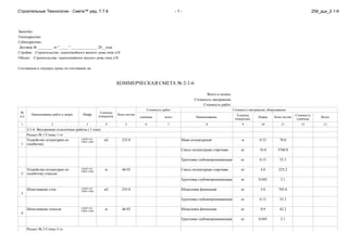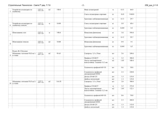 Документ содержит подробное описание работ и затрат на строительство, включая устройство земляных работ, фундамента, гидроизоляции, отмостки и стен. Каждая категория работ включает наименование, единицы измерения, количество необходимых материалов и их стоимость. Общая стоимость устройства фундамента составляет 216 010,66 рублей, а общая сумма затрат на устройства разных конструкций превышает 400 000 рублей.