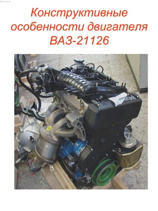 Документ представляет сравнение технических характеристик двигателей ВАЗ-21124 и ВАЗ-21126, включая параметры, мощность и ресурс. Также рассматриваются конструктивные особенности и изменения узлов, деталей и комплектующих двигателей. Основные изменения включают улучшение долговечности и снижение массы некоторых компонентов, что способствует эффективной работе и надежности нового двигателя.