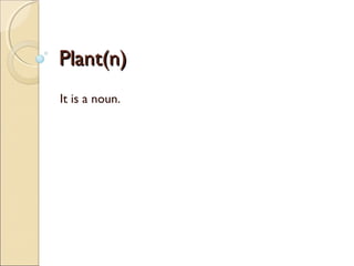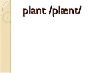 The document contains definitions and examples for several English words related to children and plants. It defines words like "plant", "pretty", "world", "little", "alone", "love", "when", "kindergarten", "pay", "grow", and "grow up". It provides the part of speech and definitions in both English and another language for each word. Examples are included to illustrate the meaning and proper usage of the words.