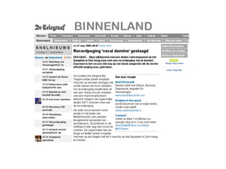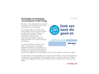 Vocal Domino 1. Vocal DominoHoe in alle dagelijkse nieuwsbladen te komen met idee design(Gebaseerd op “Made to stick”) 2. 18. Simple: Vocal Domino. Spread like a vocal virus.Unexpected: Wat is Vocal Domino?Concrete: Recordpoging Den Haag Spuiplein, 22.30Credible: Italy Talgram, Mastermundo, Art festivalEmotionalStory: Dezepresentatieis een verhaal 19.