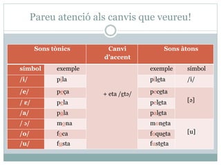 Sons tònics Canvi d’accent Sons àtons
