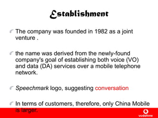 The company was founded in 1982 as a joint venture and was derived from establishing voice and data services over mobile networks. It has grown to become the fourth largest operator in India with a 16.4% nationwide market share. Vodafone later acquired Hutchison Essar in 2007, becoming Vodafone Essar which is now one of the largest mobile companies in India, offering both prepaid and postpaid plans. Asim Ghosh led the company for 10 years before retiring in 2017 and was replaced by Marten Pieters as CEO.