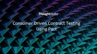 This document introduces consumer-driven contract testing using Pact. It discusses problems with traditional unit, integration and end-to-end tests. Contract testing captures the interactions between a consumer and provider as tests. It registers expectations of the request and validates the response. This allows each component to be tested independently and improves test isolation, speed and reliability over other strategies. Pact is a framework for contract testing that supports multiple languages and platforms.