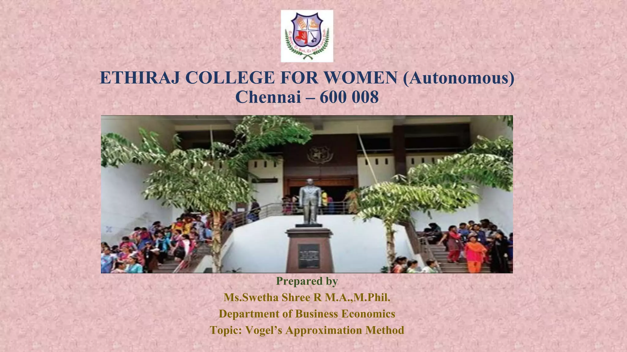 Vogel's approximation method is an iterative method used to find an initial basic feasible solution for the transportation problem. It works by calculating penalties for each row and column based on the difference between lowest costs. It then selects the row or column with the highest penalty and allocates the minimum supply or demand to the cell in that row/column with the lowest cost. This process repeats, eliminating satisfied rows and columns, until all constraints are met. The document provides examples demonstrating how to apply Vogel's method step-by-step to solve transportation problems.