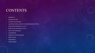 The document presents the development of a semi-autonomous, voice-controlled robot vehicle utilizing IoT and AI technologies, aimed at improving transportation accessibility. It details the system's components, including hardware and software, and highlights its energy efficiency and capabilities, such as obstacle detection. The project contributes to existing knowledge by demonstrating a sustainable, cloud-based approach to autonomous vehicle control for individuals with mobility challenges.