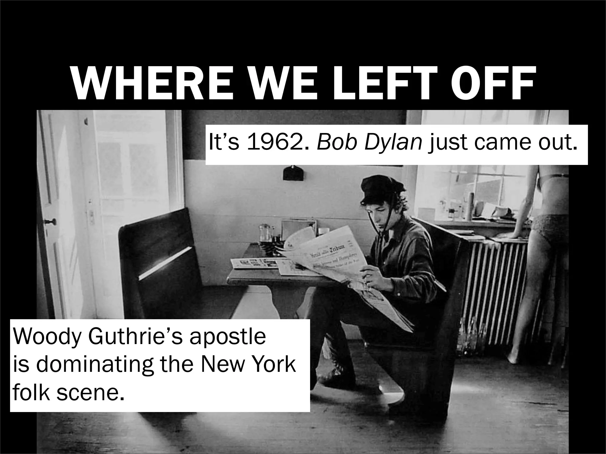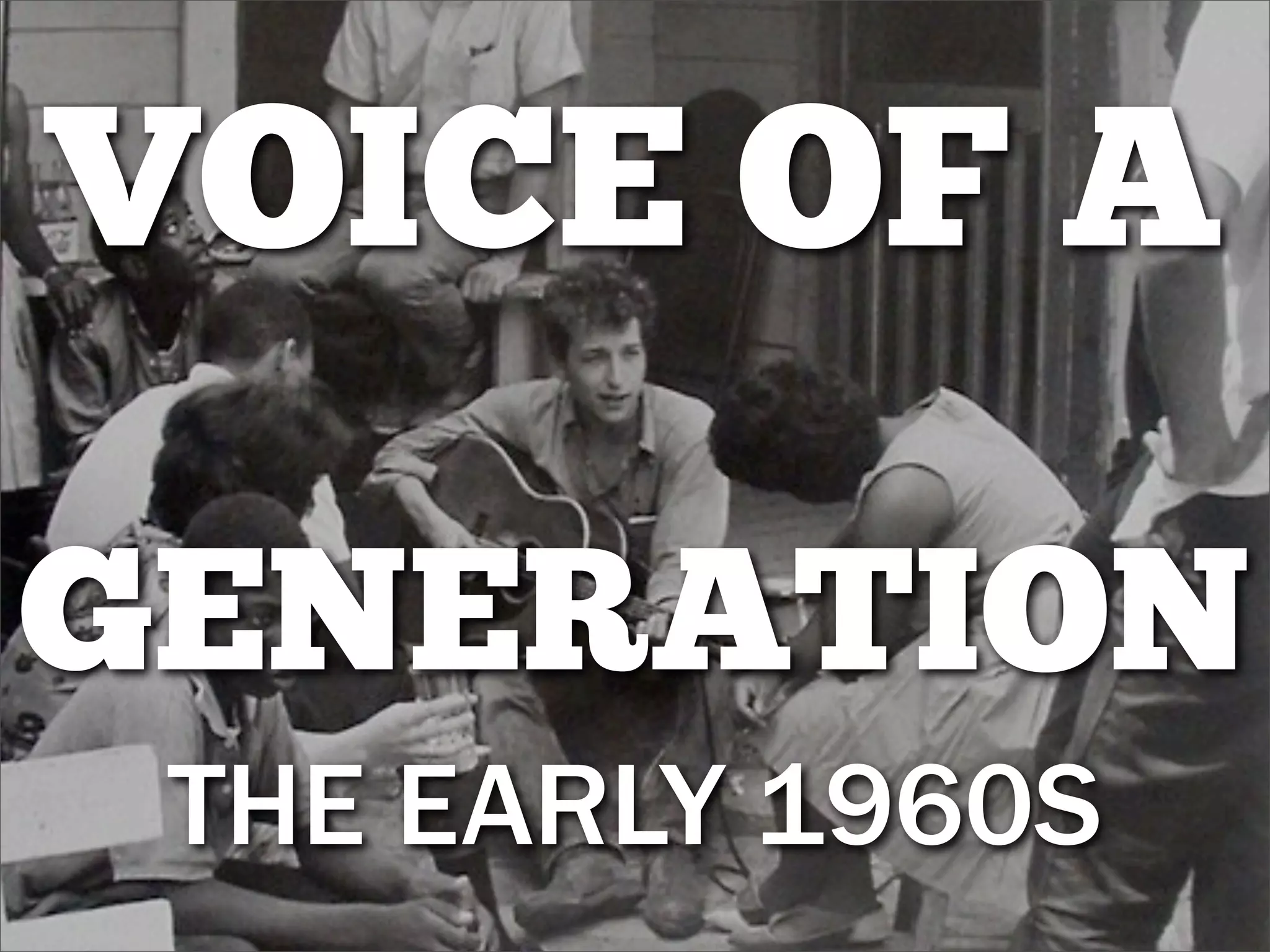 The document highlights the cultural and political landscape of the early 1960s, focusing on Bob Dylan's emergence as a significant voice in the folk music scene with influential songs addressing civil rights and the Cold War. It discusses key tracks from his albums, including 'The Freewheelin' Bob Dylan' and 'The Times They Are a-Changin', while noting the impact of his performances and collaborations with other figures like Joan Baez. The text also references various events and awards related to civil liberties during this era.