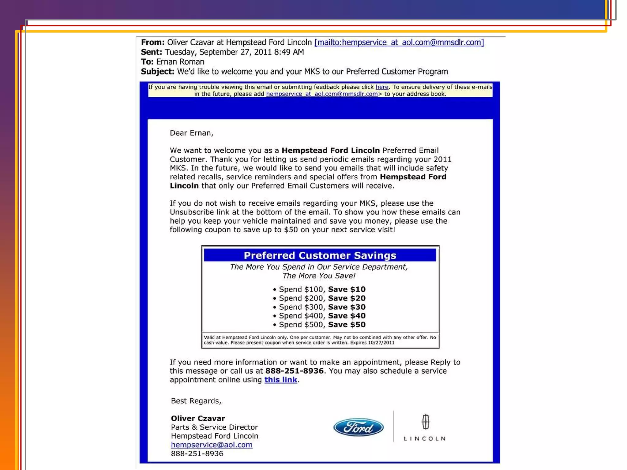 The document summarizes a presentation on achieving true customer engagement through a 5-step voice of customer (VOC) driven relationship marketing process. It discusses conducting VOC research to understand customer priorities and expectations. It then outlines the 5 steps: 1) using VOC to drive relationship strategies, 2) creating opt-in databases with customer profiles, 3) deploying multichannel marketing per customer preferences, 4) delivering strong customer service, and 5) increasing the power of online experiences. Case studies show companies achieving double-digit increases in results through this process.