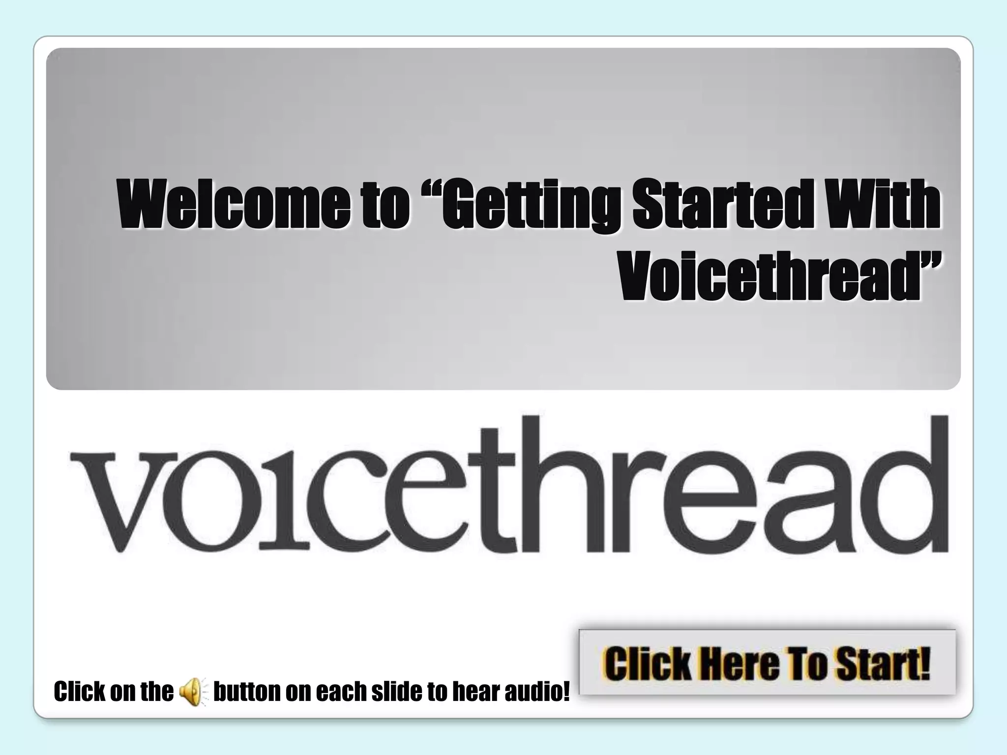 This document provides step-by-step instructions for creating a basic Voicethread. It explains how to log in, select the "Upload" button to add images or videos, comment on slides using text, audio, or webcam, and share the Voicethread with others while controlling their access to view or edit. The goal is for users to understand the basic functions for constructing and sharing an initial Voicethread with multimedia content and comments.