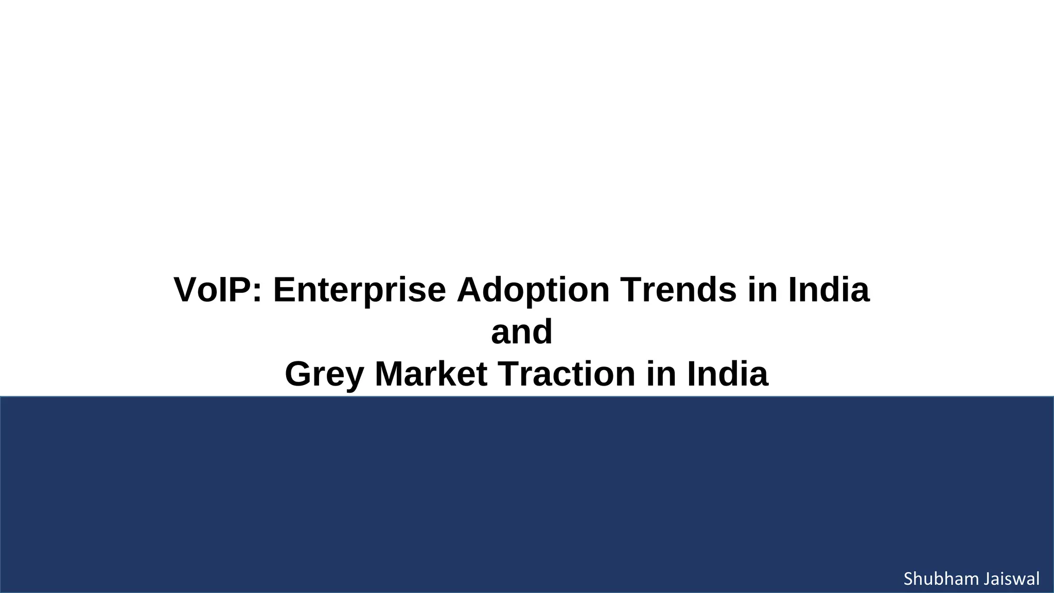 VoIP has significant potential in India due to the large number of global enterprises operating there. However, its growth is restricted by regulations prohibiting VoIP gateways within India. Enterprises are consolidating PSTN and VoIP networks using logical partitioning to reduce costs while complying with regulations. The grey market also poses challenges, with unlicensed providers stealing large volumes of business from licensed operators.