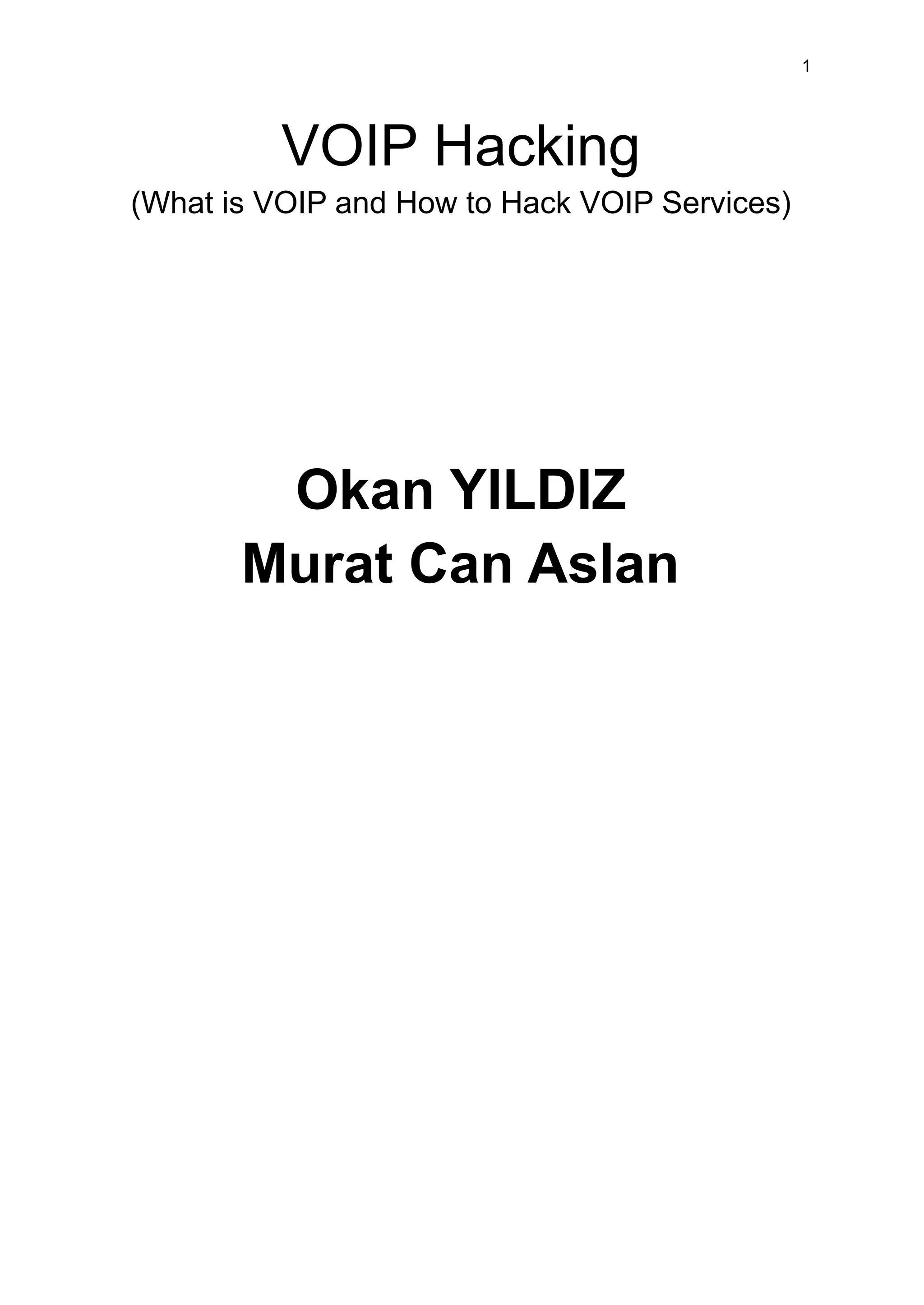 This document provides a comprehensive overview of Voice over Internet Protocol (VoIP), detailing its functionalities, history, and methods for hacking VoIP networks. It highlights the advantages and disadvantages of VoIP technology, how it works, and the protocols involved, along with a step-by-step guide on how to conduct penetration testing on VoIP systems. Key topics include VoIP equipment, system components, protocols, and the ethical considerations in security testing.