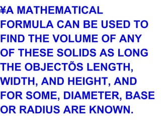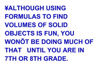 One of my earlier slideshows showing students how to measure the volume of irregularly shaped objects.