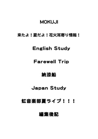 i sh Study Farewel l T r ip 納涼船 J a p a n Stu d y 虹音楽部夏ライブ!!! 編集後記