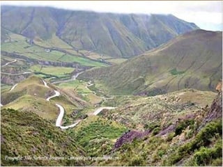 Volcanoes are mountains composed of lava, molten rocks, and ashes that erupt from the interior of the Earth. Glaciers are formed from ice and are currently melting due to global warming. Valleys contain trees like pine trees and provide a scenic landscape.