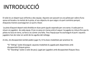 *El “Sitting” (volei d’assegut): aquesta modalitat és jugada pels deportistes amb