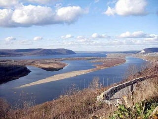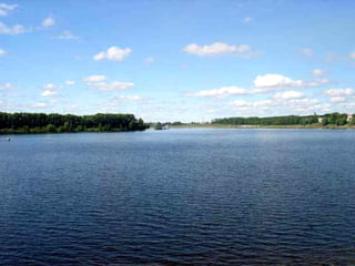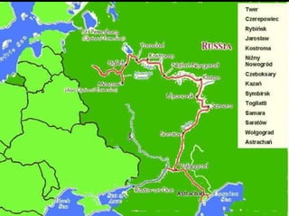 Wołga – najdłuższarzeka Europy o długości 3690 km. Powierzchnia dorzecza 1380 tys. km 2 , średni przepływ 8000 m 3 /s, roczny przepływ 252 km 3 . Bierze swoje źródła we wzgórzach Wałdaj, potem w swym górnym biegu łączy ze sobą szereg małych jezior. Płynąc wśród wzgórz morenowych tworzy głęboką dolinę. W środkowym biegu płynie przez obniżenie Wyżyny Wschodnioeuropejskiej, początkowo w kierunku wschodnim, a potem południowym. Powyżej Wołgogradu oddziela się od Wołgi rzeka Achtuba, która płynie równolegle przez ok. 540 km, łącząc się z głównym nurtem licznymi odnogami i kanałami, w końcu uchodzi do jednego z ramion delty wołżańskiej. Uchodzi w postaci olbrzymiej delty do Morza Kaspijskiego. Delta ma powierzchnię ok. 19 tys. km 2 i tworzy ponad 80 ramion, a jej roczny przyrost przekracza 180 metrów. Rzeka od wysokości Wołgogradu nie ma żadnych dopływów, jest żeglowna na długości 3400 km. Jest połączona z: - Morzem Azowskim przez Kanał Wołżańsko-Doński - Morzem Czarnym przez Kanał Wołżańsko-Doński - Bałtykiem przez Kanał Wołżańsko-Bałtycki - Morzem Białym przez Kanał Białomorsko-Bałtycki