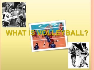 Volleyball is a team sport played by two teams over a high net. The objective is to ground the ball on the opponent's side without it being returned. Key points in the history of volleyball include its invention in 1895 and the introduction of techniques like setting and spiking by Filipino players in 1916. The document provides details on the rules, techniques, terminology, and continued evolution of volleyball internationally and in the Philippines over the 20th century.