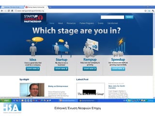 Πώς προχωράμε; Αναποφασίσεις να κάνεις τη δική σου startup επιχείρηση: Πάνω από τρεις, είναι σύλλογος όχι εταιρεία Να έχεις ξεκάθαρο business plan N α γίνεις marketing expert Η επιτυχία έρχεται από την επιμονή, την εργατικότητα και την ποιότητα Καλές συμμαχίες Απρόσκοπτη χρηματοδότηση Y ψηλοί στόχοι μαζί με ρεαλισμό! Δεν έχουμε να ζηλέψουμε τίποτα από τους συναδέλφους σε επιτυχημένες χώρες!