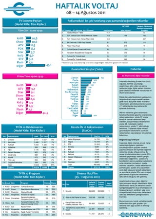 TV İlk 10 Reklamveren Gazete İlk 10 Reklamveren belirtilmiş. Toplamda dijital reklam