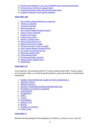 Documentul detaliază experiențele unui grup de cercetare condus de Baird T. Spalding în Orientul Îndepărtat, în special în Himalaya, unde au interacționat cu maeștri spirituali. Aceștia au explorat învățăturile profunde și realizările acestor maeștri, inclusiv teme precum teleportarea, proiecția astrală și vindecarea. Cartea subliniază importância iubirii divine și o viziune integrativă asupra spiritualității, fără a intenta a propovădui o nouă religie.