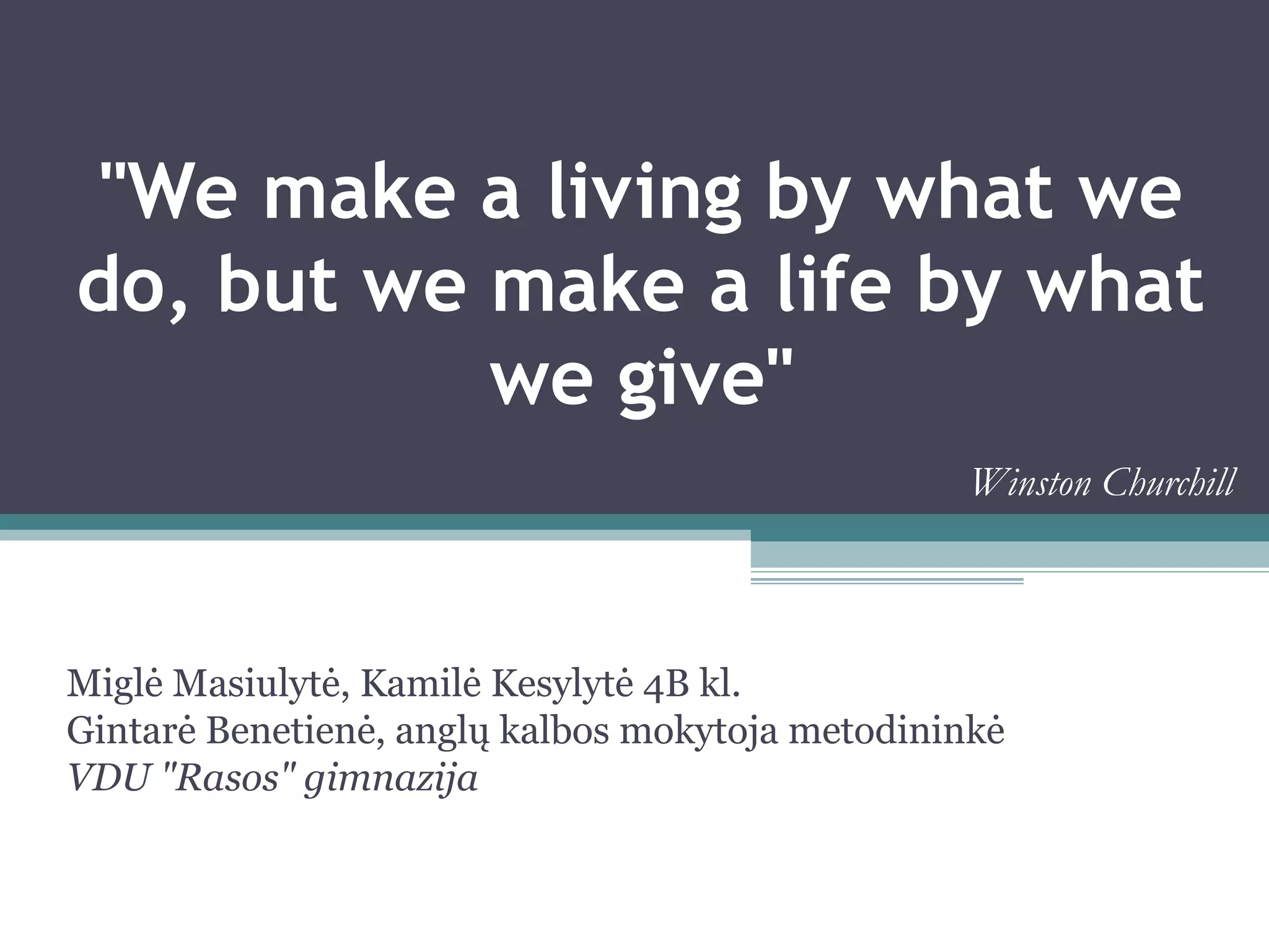 This document discusses the importance of volunteering. It provides benefits to both communities and individuals. For communities, volunteering improves life, helps those in need, and brings people together. For individuals, volunteering leads to personal development, new skills, employment prospects, and a sense of achievement. While volunteering requires a time commitment and offers no pay, it can positively impact both societies and people's lives. The document also compares volunteering trends in the United States and Lithuania.