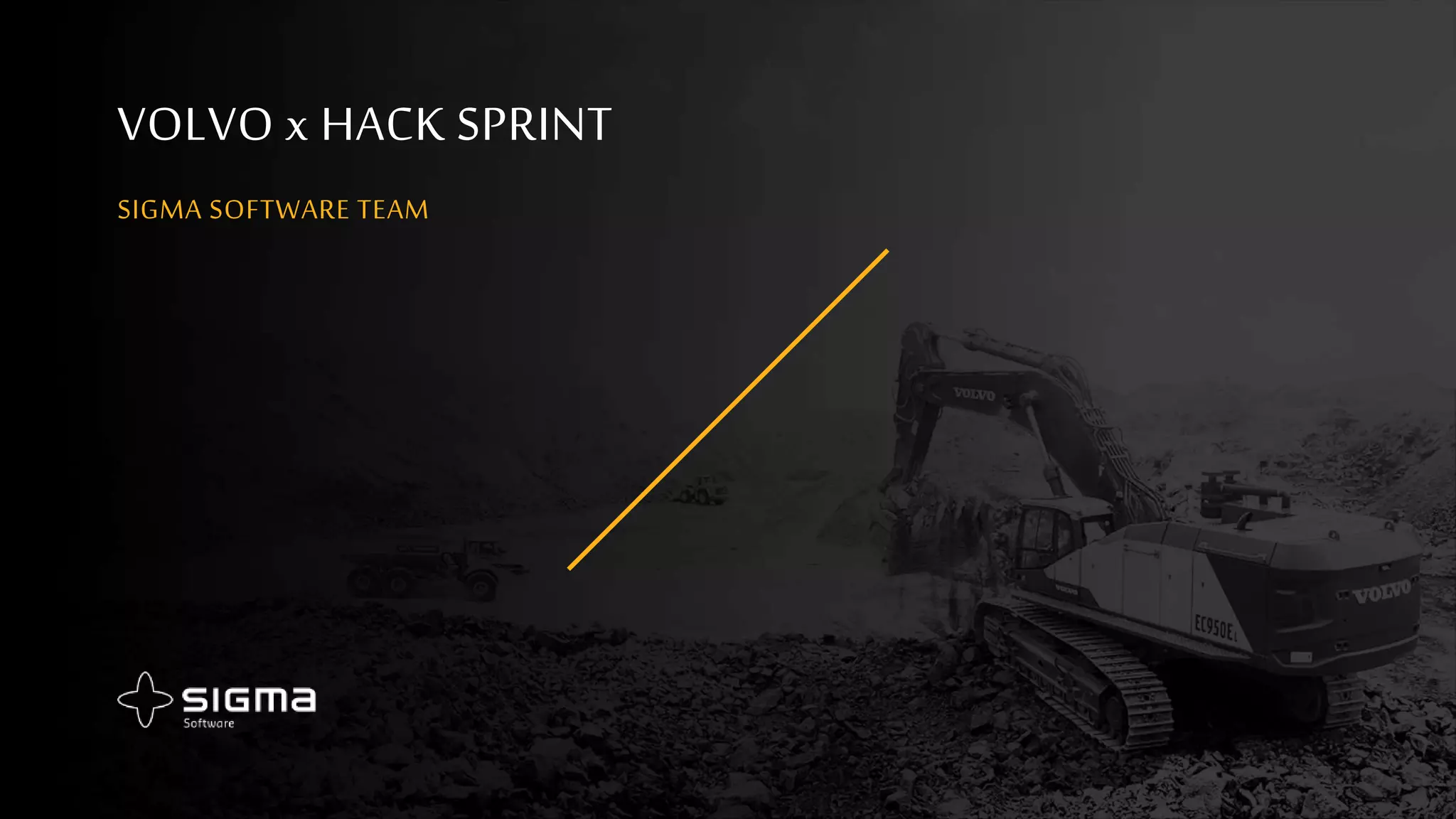 The document describes a hack sprint by the Sigma Software Team to develop features for a Volvo excavator monitoring application. The main features described include a modern and user-friendly design, operator authorization and access to recent diagnostic information. Additional suggested features include viewing diagnostic histories, integrating user and dealer profiles with parts databases and remote warehouses, and enabling remote technical support. The document concludes by thanking the audience and inviting any questions.