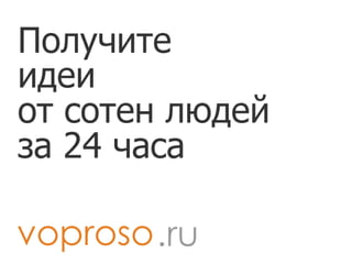 На https://Voproso.ru вы получаете идеи для вашего проекта за 24 часа.