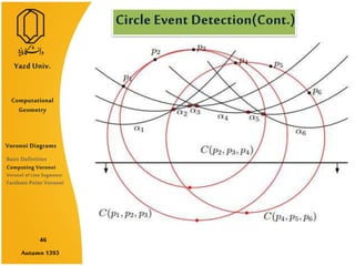 The document discusses geometric concepts and mathematical equations related to vertices, edges, and degrees in graph theory. It presents various formulas that relate to the number of vertices and edges in a geometric framework. The content appears to be technical and likely pertains to computational geometry or graph theory analysis.