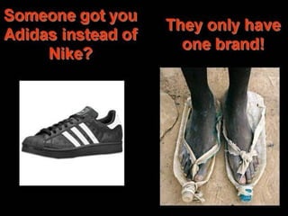 The document provides advice on being grateful for what one has by comparing one's situation to those less fortunate. It suggests that if you think you are unhappy, look at others who have it worse. It notes that some things are worse for others and better for us, and to enjoy life as it is rather than complain. It ends by stating this email should circulate forever to spread its message.