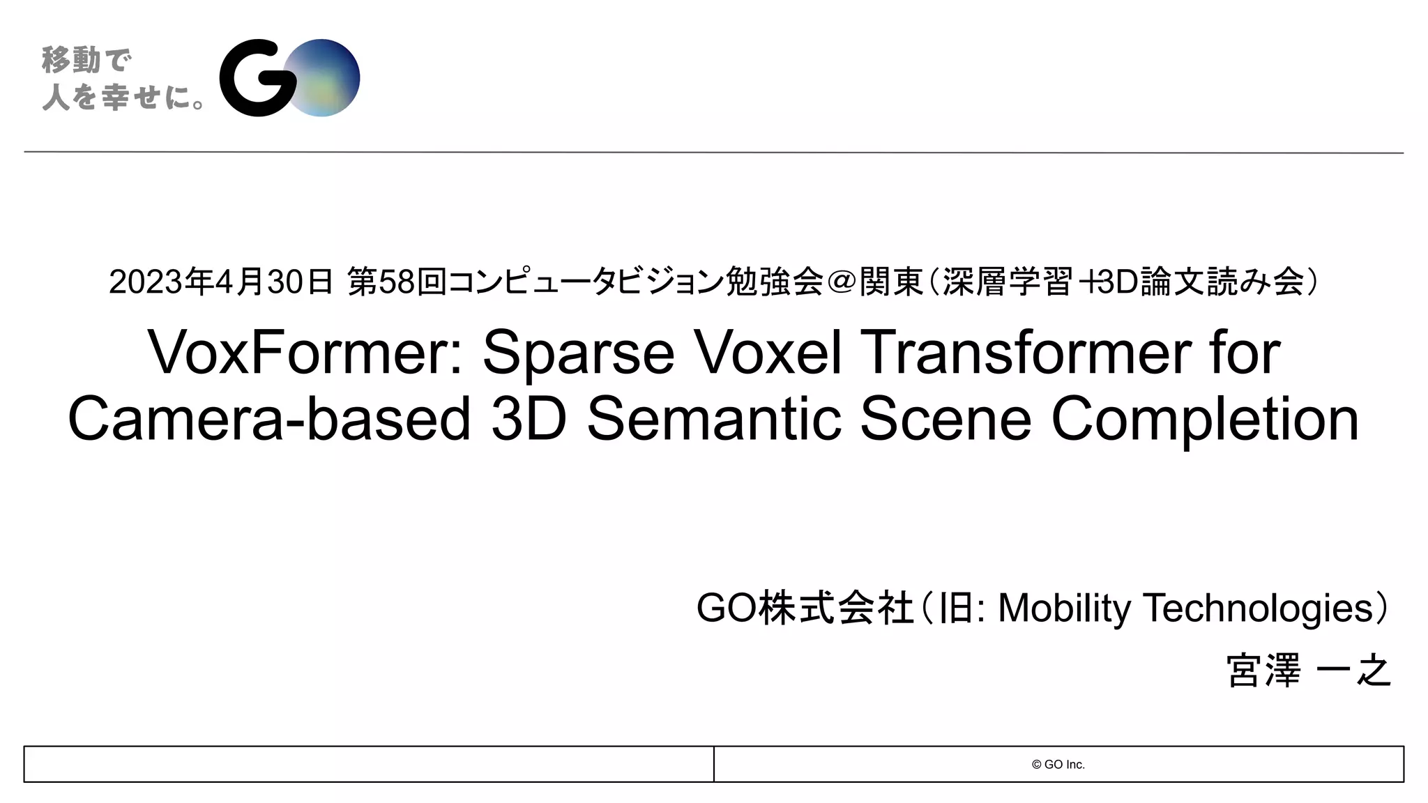 2023年4月30日「第58回 コンピュータビジョン勉強会@関東」での発表資料です。"VoxFormer: Sparse Voxel Transformer for Camera-based 3D Semantic Scene Completion"の紹介です。