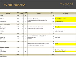This document discusses diversification and asset allocation in investing. It defines diversification as spreading investments across different sectors, industries, and countries to reduce risk. Proper asset allocation is emphasized as the most important part of portfolio management. The major asset classes discussed are cash, bonds, property, and equities, with their varying risk-return profiles. The document advises that asset allocation should become more conservative as one ages, with a higher stock allocation when younger to take advantage of growth. Historical returns and the risk-return tradeoff are also briefly covered.