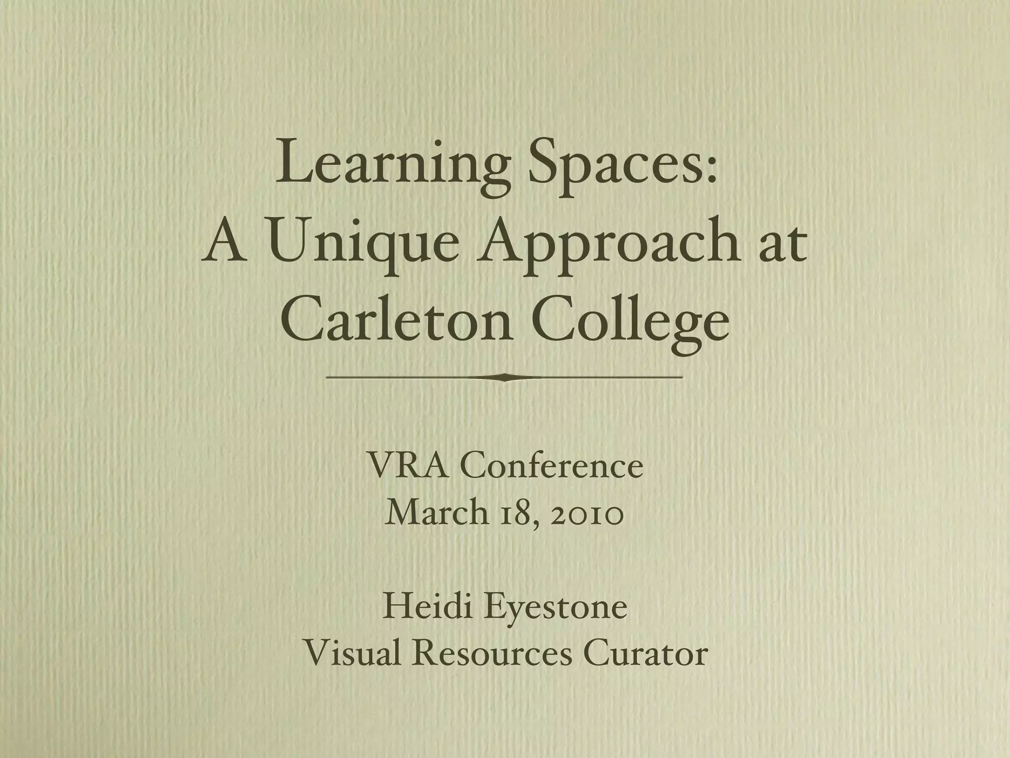 The document discusses the design and support of learning spaces at Carleton College, emphasizing the need for alignment with curricular demands and student work habits. It highlights findings from a mixed-method study about how students seek support based on assignment types and class years, leading to recommendations for improving study environments. Effective collaboration between faculty and staff is essential for developing assignments and creating supportive learning spaces tailored to student needs.