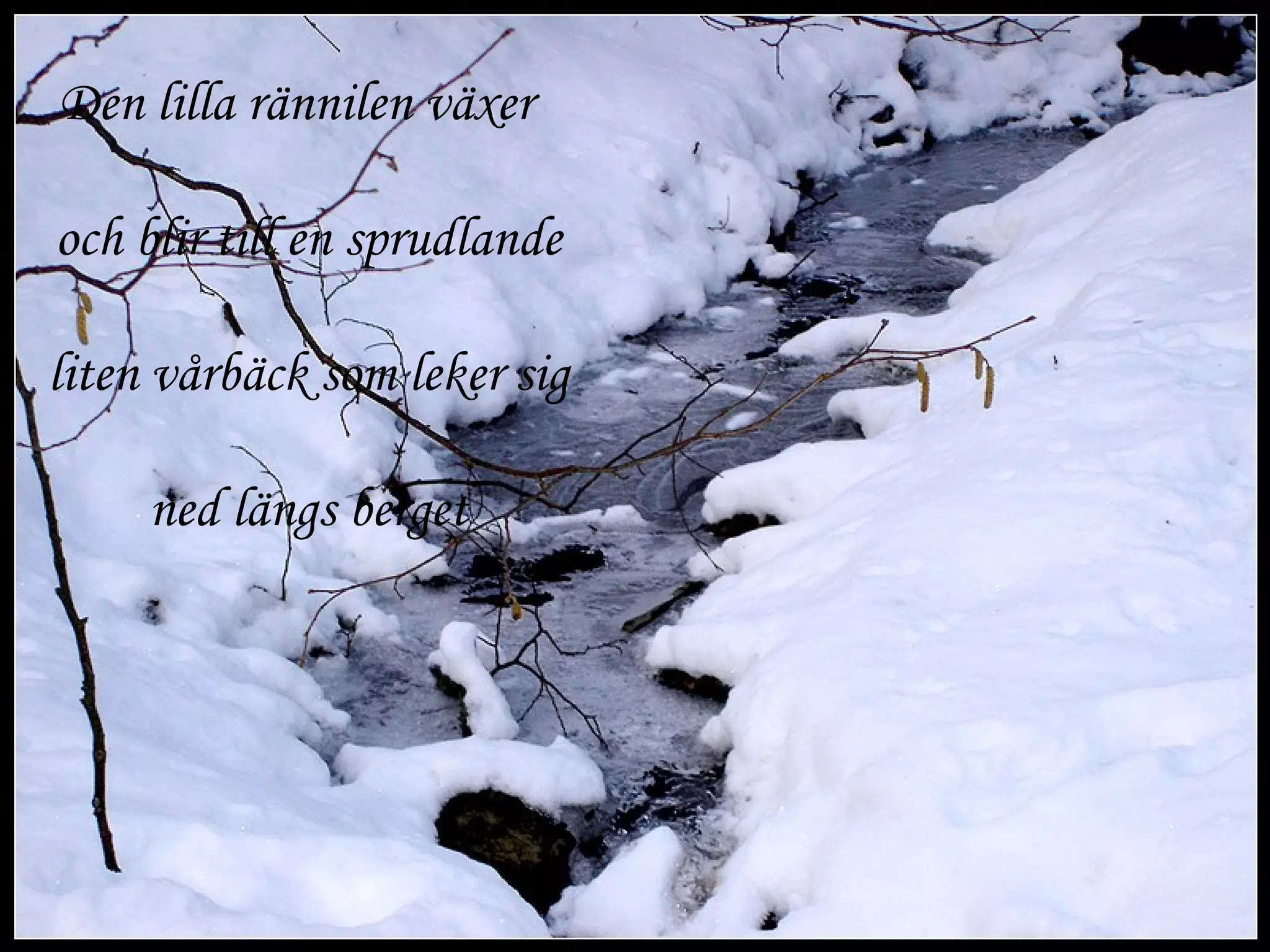 Den lilla rännilenväxer och blir till en sprudlande liten vårbäck som leker sig ned längs berget