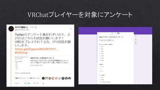 2019/04/15 DoMCN vs VRChat ミートアップLT会 #2 専門家じゃない学生が2週間で調べたものなので、こんなデータもあるんだ程度に見ていただければ幸いです。 @HHOTATEA_VRC