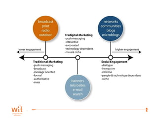 Kenmerken sociale mediaKenmerken Effecten simpel en transparant toegang tot meer informatie dan ooit meer ‘ bronnen’ om tot een beslissing te komen dag en nacht, 24/7 en continu informatie verspreidt zich sneller mensen zijn altijd bereikbaar participatief en niet-hiërarchisch iedere mening telt niet stuurbaar vraag gestuurd de ontvanger bepaalt (niet de zender) overal en altijd te ‘gebruiken’ - grenzen vervagen: privé en zakelijk nationaal en internationaal voorlichting, opinie en vermaak feiten, fictie en vooroordelen