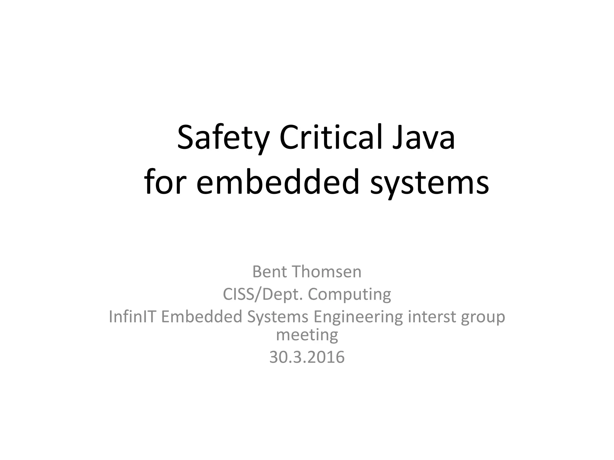 The document discusses the challenges and advancements in programming safety-critical embedded systems, particularly focusing on Java as a preferred language. It highlights issues such as unpredictable performance and the introduction of the Real-Time Specification for Java (RTSJ) and Safety-Critical Java (SCJ) to enhance software reliability. The evolution of tools and methodologies for real-time analysis and compliance with standards is also addressed, emphasizing the need for compatibility and effectiveness in developing embedded systems.
