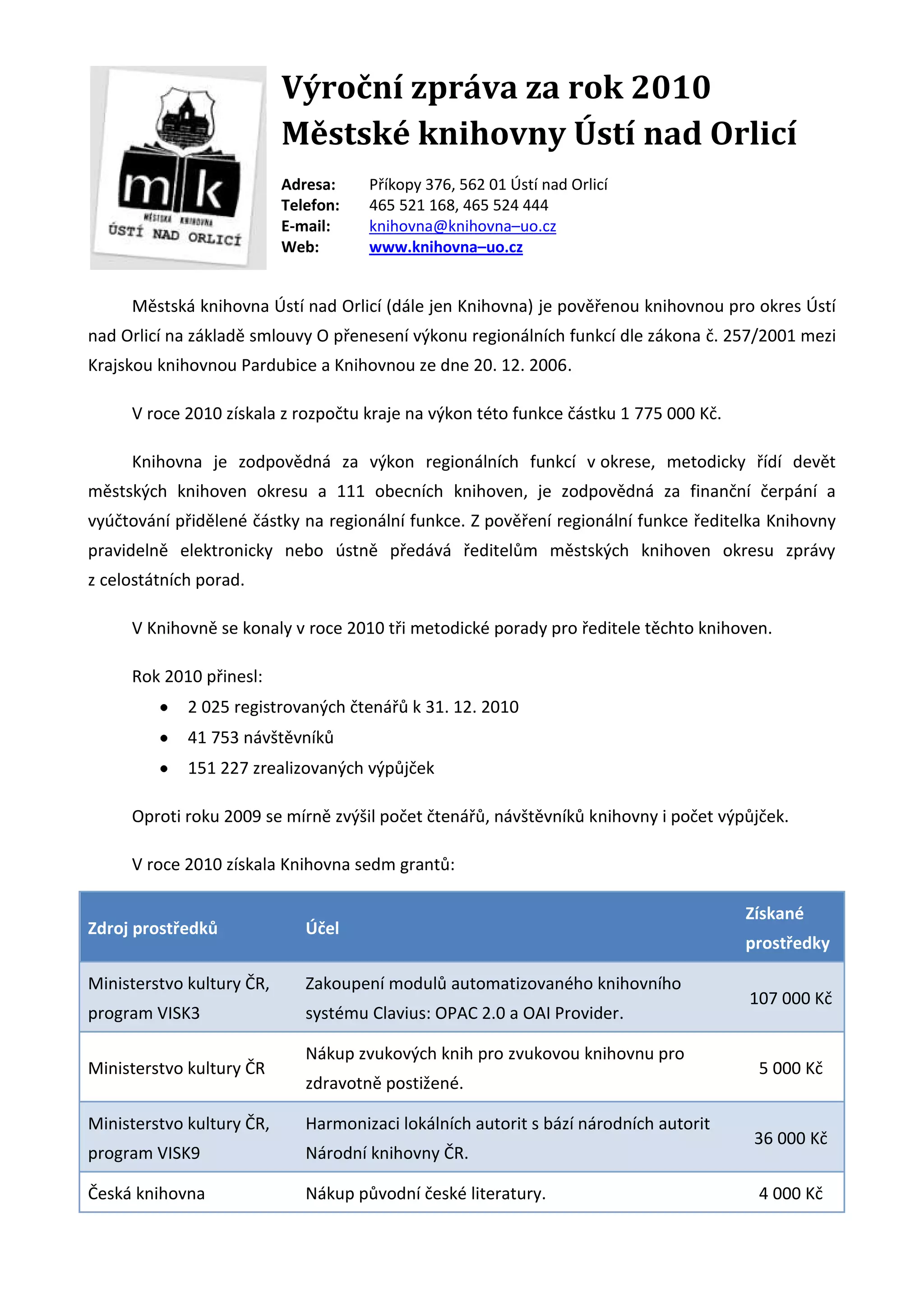 Městská knihovna Ústí nad Orlicí (dále jen Knihovna) je pověřenou knihovnou pro okres Ústí