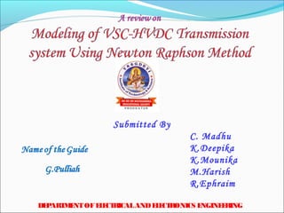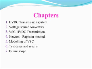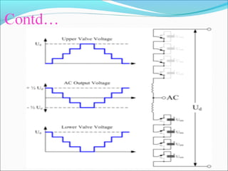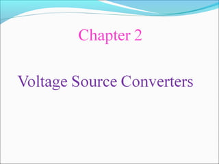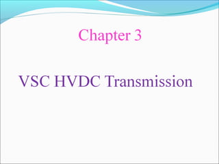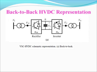 This document provides an overview of voltage source converters (VSC) for high voltage direct current (HVDC) transmission. It discusses the components and operation of VSC-HVDC systems, including different converter configurations like two-level, three-level, and modular multi-level converters. It also compares VSC-HVDC to conventional HVDC systems using line-commutated converters, noting advantages of VSC-HVDC like eliminating the need for reactive power compensation and reducing the risk of commutation failures.