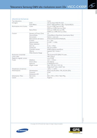 La telecamera Samsung D&N VSCC-C4335P offre alta risoluzione e uno zoom ottico 32x, ideale per ambienti con scarsa illuminazione grazie alle funzionalità WDR e N&D. È dotata di auto focus, maschere di privacy e multisoluzione, con una sensibilità di 0,001 lux in condizioni di colore. Ulteriori caratteristiche includono controllo remoto, messa a fuoco automatica e vari protocolli di supporto.