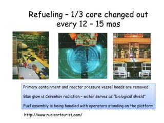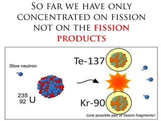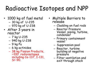 1. The document covers fundamentals of nuclear physics including radioactive decay, isotopes, induced and spontaneous fission, critical mass, and uncontrolled nuclear chain reactions.